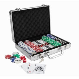 FULL Set de juego de poker con 2 barajas, 5 dados, 1 ficha dealer y 200 fichas d...