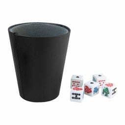 CRACK Juego de cubilete con interior forrado y 5 dados de poker....