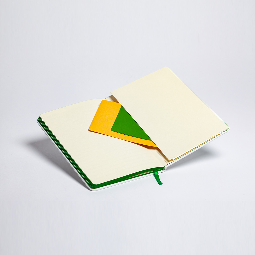 SOHO Libreta con cubierta dura de PU. Canto, banda elástica y separador del mismo color, 80 hojas rayadas y sobre porta documentos. Recomendamos imprimir en termograbado para que su logo destape a color.