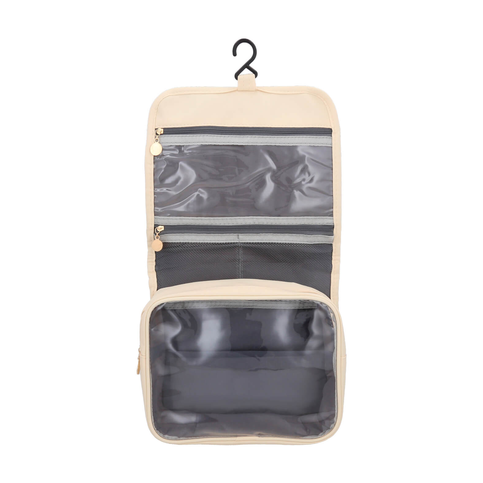 REIS Estuche para viaje de poliéster con 1 compartimento principal con cierre y bolsa al interior, 2 compartimentos con malla, 1 compartimento transparente, gancho de plástico, asa y compartimento trasero.