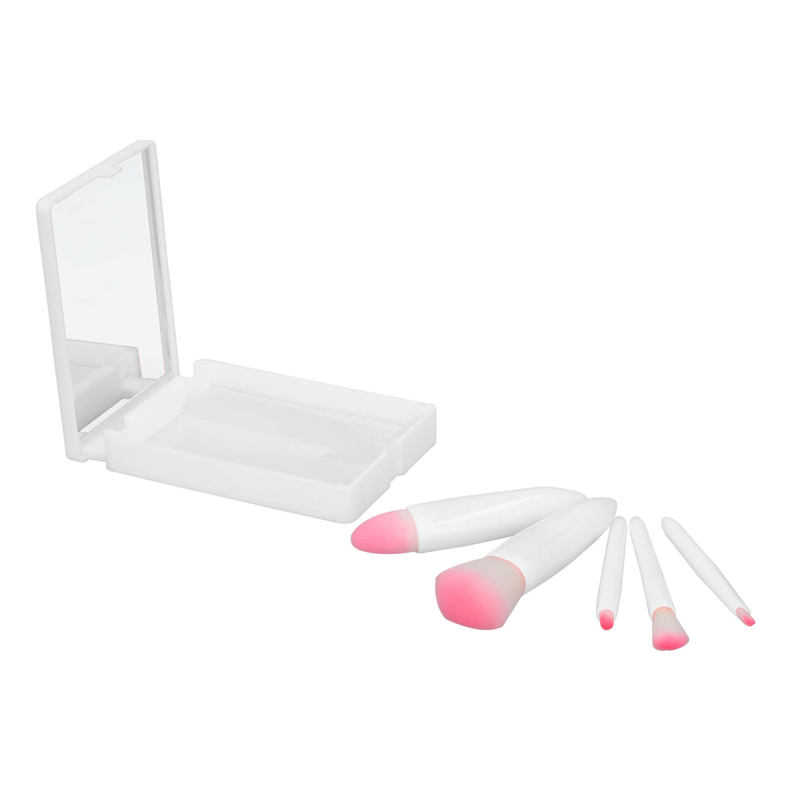 RUBOR Set de 5 brochas para maquillaje con espejo y estuche de plástico.