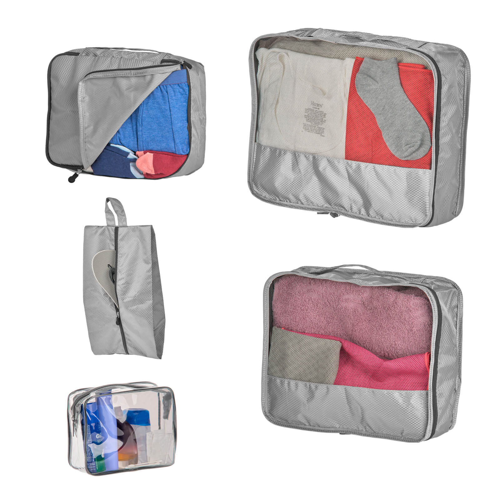 WALTER Set de bolsas organizadoras de equipaje. Incluye tres bolsas de diferentes tamaños, una zapatera y un estuche de guardado transparente con cierre.