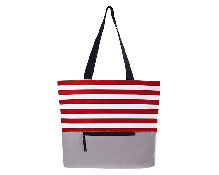 MARGIN - Bolsa con diseño de franjas horizontales. Cuenta con bolso exterior de cierre y asas para transportar.
