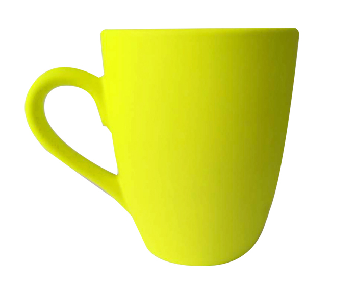 TONY - Taza de cerámica bicolor con recubrimiento de goma en el exterior, ideal para grabar en láser. CAP. 10 OZ. Venta múltiplos de 12.