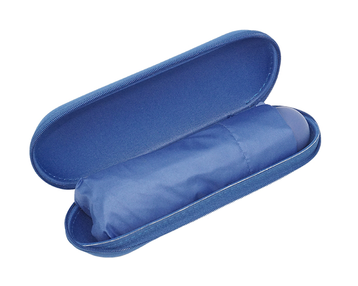 FANTASSY - Paraguas de bolsillo con protección de rayos UV y botón de apertura manual, costillas de fibra de vidrio, varillas y eje de metal. Cuenta con mango en acabado rubber y asa para colgar. 6 gajos. Incluye funda individual y estuche con cierre para guardar.
