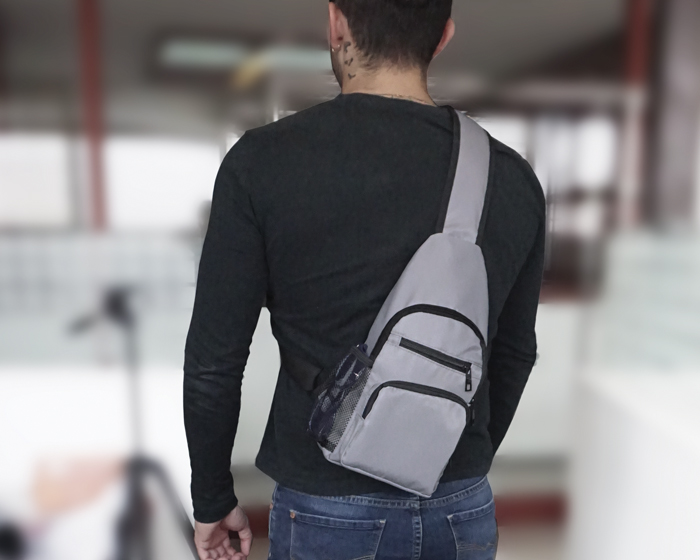 BELLAKO - Pechera impermeable con correa acolchada ajustable, bolsa de malla lateral con resorte, entrada de carga puerto USB, bolsa frontal, bolsa superior y bolsa principal con compartimento interno par guardar accesorios. (Cada bolsa con cierre). Incluye cable para carga.