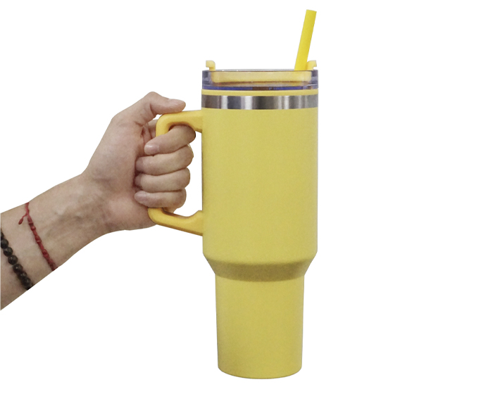 MUGLY - Termo con exterior de acero inoxidable con interior de plástico y asa de plástico. Incluye tapa transparente con cierre a presión y seguro giratorio en color del termo, con ranura para popote de color. CAP. 1,200 ml. Presentación: Caja en color blanco.
