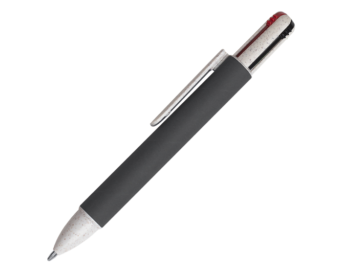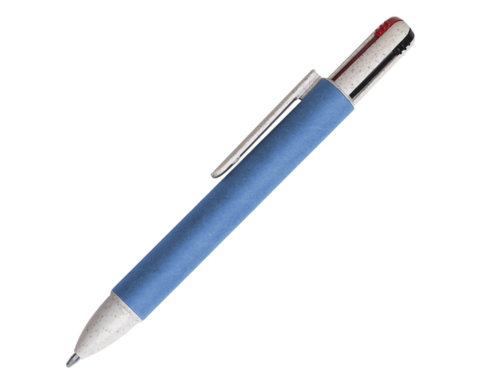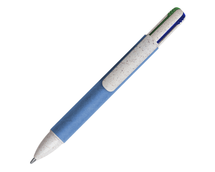 SPEARS - Bolígrafo ecológico multifunción con 4 colores diferentes de tinta: negro, azul, verde y rojo; mecanismo de click con cuerpo de papel; punta, clip y parte superior de fibra de trigo.