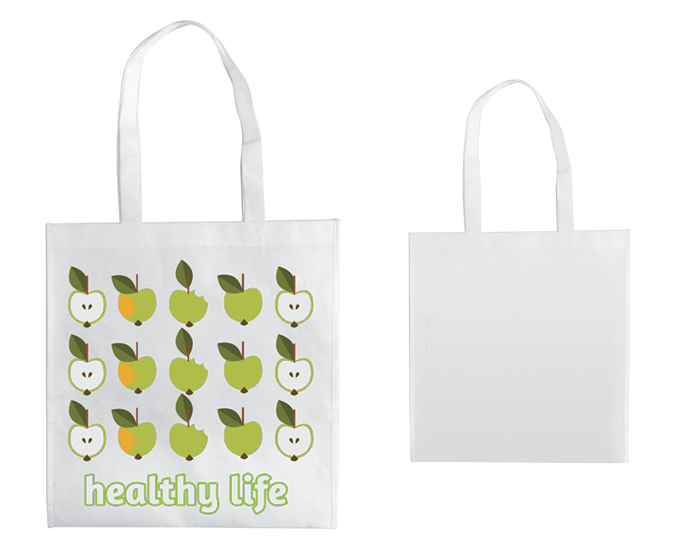 MARIANA - Bolsa ecológica de Non Woven cosida con asas largas. Ideal para sublimar. Temperatura y Tiempo sugeridos para sublimar: 190 grados / 60 seg.
