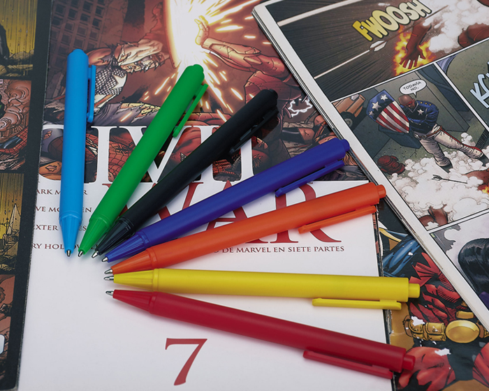 BELMA DE TINTA AZUL - Bolígrafo de plástico de tinta azul con cuerpo en color. Mecanismo de click.