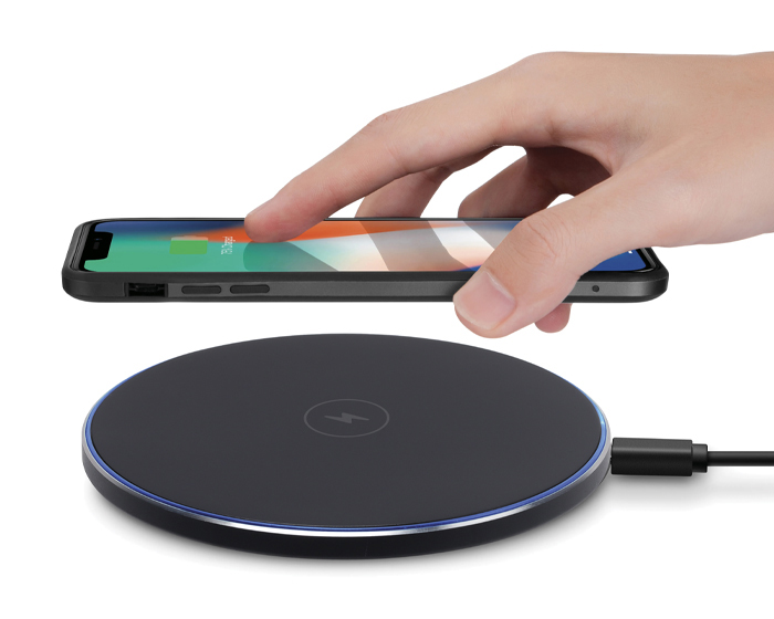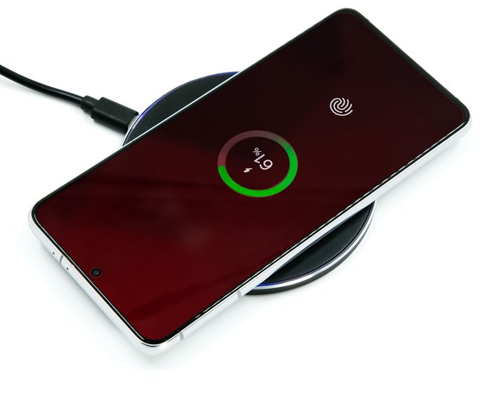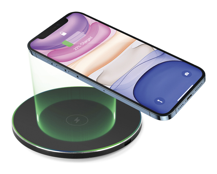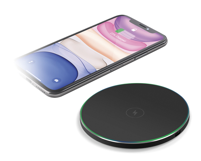 POISON - Base cargador inalámbrica de carga rápida Qi (15W), con luz LED que cambia de color al cargar un dispositivo, puerto de carga tipo C. Incluye cable de carga. Compatible para dispositivos Android e iOS. Presentación: caja de regalo a color.