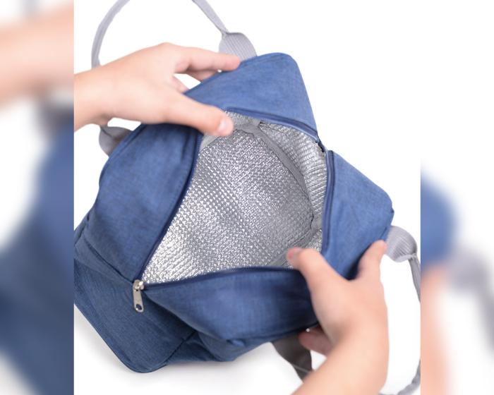 MATERIAL: Poliéster / Alufoil MEDIDAS: 29 x 23 x 16 cm IMPRESION: SE GL MED. EMPAQUE: 60 x 50 x 45 cm PESO EMPAQUE: 8.5 kg PIEZAS EMPAQUE: 40