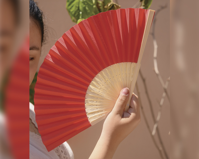 LOCOMIA - Abanico plegable de papel con baraja de bambú.