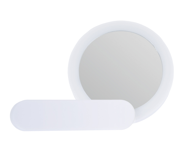 MATERIAL: Plástico PS / Espejo MEDIDAS: Plegado: 9.9 x 9 x 2.1 cm / Extendido: Ø 9 x 17.1 x 2.1 cm IMPRESION: TM DTFT MED. EMPAQUE: 43 x 28.5 x 26.5 cm PESO EMPAQUE: 6.15 kg PIEZAS EMPAQUE: 80