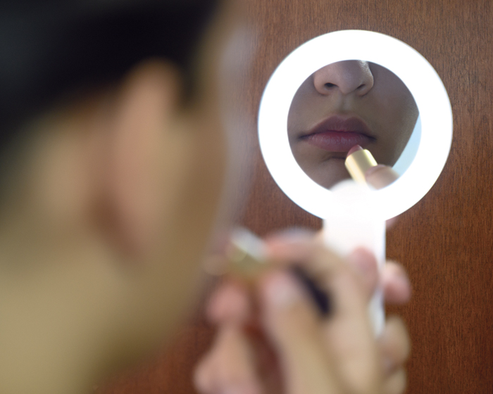 VANITY - Espejo de bolsillo con 12 luces LED y mango giratorio que sirve como soporte. Tiene botón de encendido y apagado. Incluye 2 baterías de botón. Presentación: caja en color blanco.