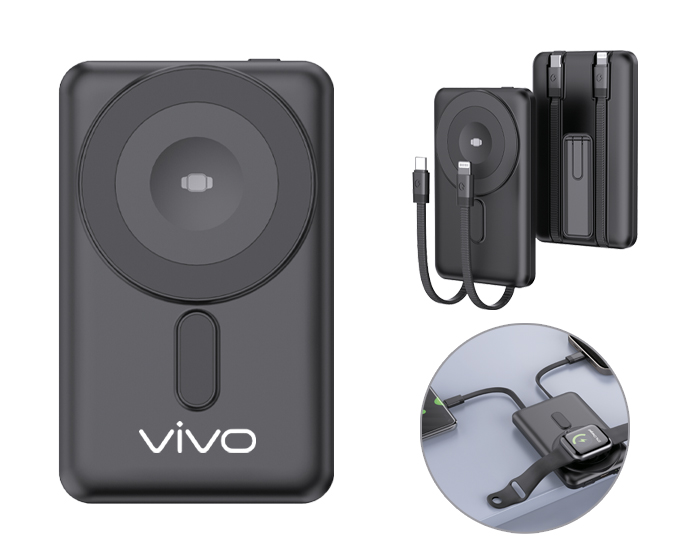 MAGNETIC - Batería inalámbrica portátil wireless de carga rápida, con función de carga magnética para dispositivos móviles (15W) y relojes inteligentes(2.5W). Capacidad de 5,000 mAh, 5 indicadores de luz de carga de la batería, entrada de carga tipo C (Incluye cable de carga), botón de encendido/apagado y 2 cables de salida para carga de dispositivos móviles: 1 entrada tipo C y uno entrada para iphone. Incluye soporte metálico para dispositivos móviles. Compatible con dispositivos Android e iOS. Presentación: Caja de regalo a color. (Para carga inalámbrica verifique la compatibilidad con sus dispositivos móviles).