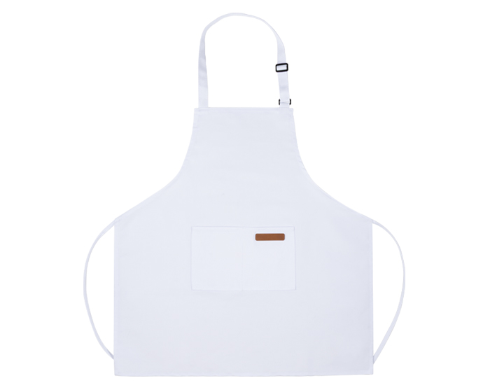 PRO CHEF - Mandil de poliéster con doble bolsillo frontal, cuenta con detalle de curpiel en la bolsa izquierda, cintillo al cuello ajustable por medio de una hebilla plástica y cordones para ajustarse a la cintura.