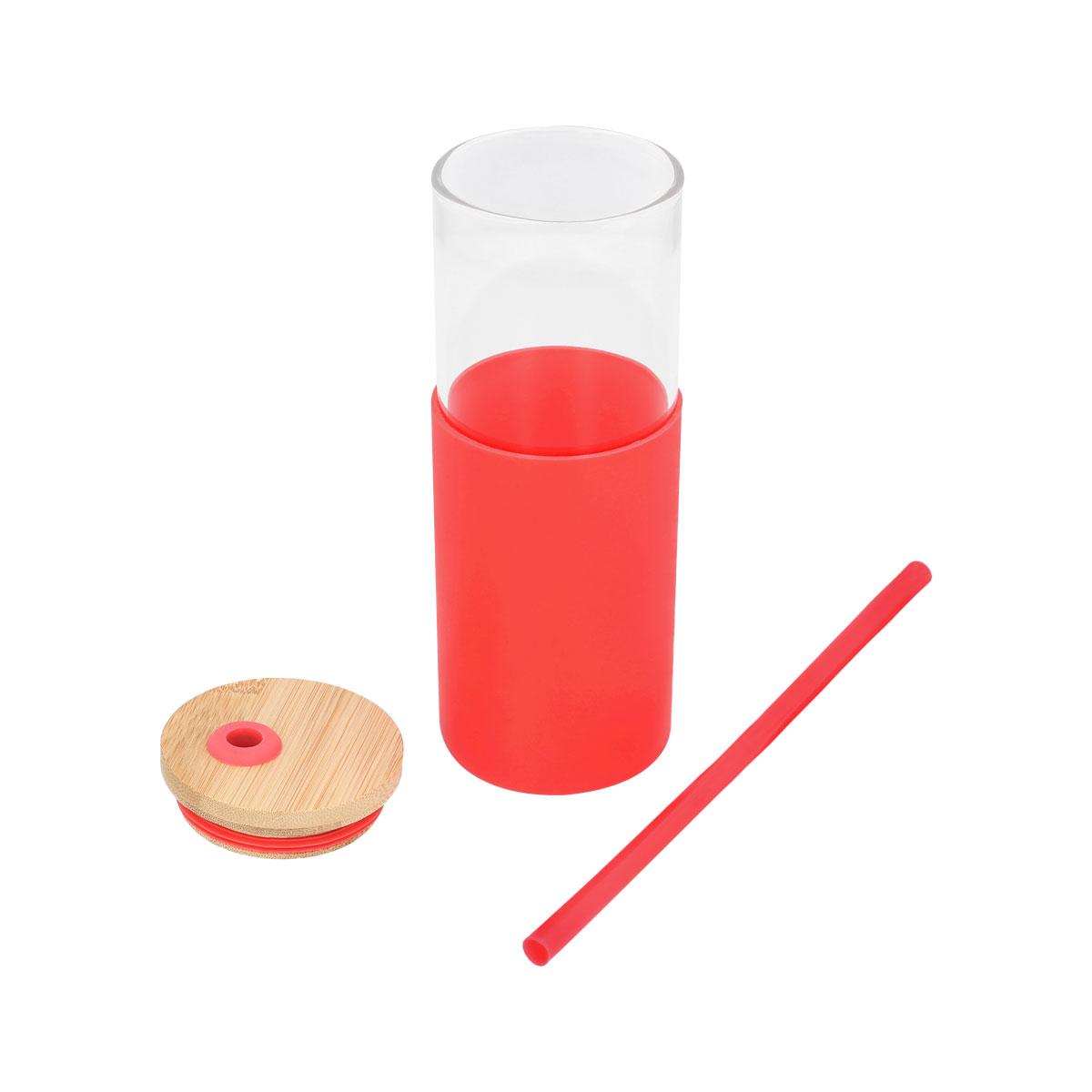 CILINDRO DE VIDRIO IBIZA - Cilindro de vidrio con manga de silicón removible, tapa de bambú y popote de silicón. Incluye caja individual. El bambú es un producto natural el cual puede presentar variaciones en tonalidades y vetas. Este producto por ser últimas piezas puede presentar alguna variación, no se aceptan devoluciones.