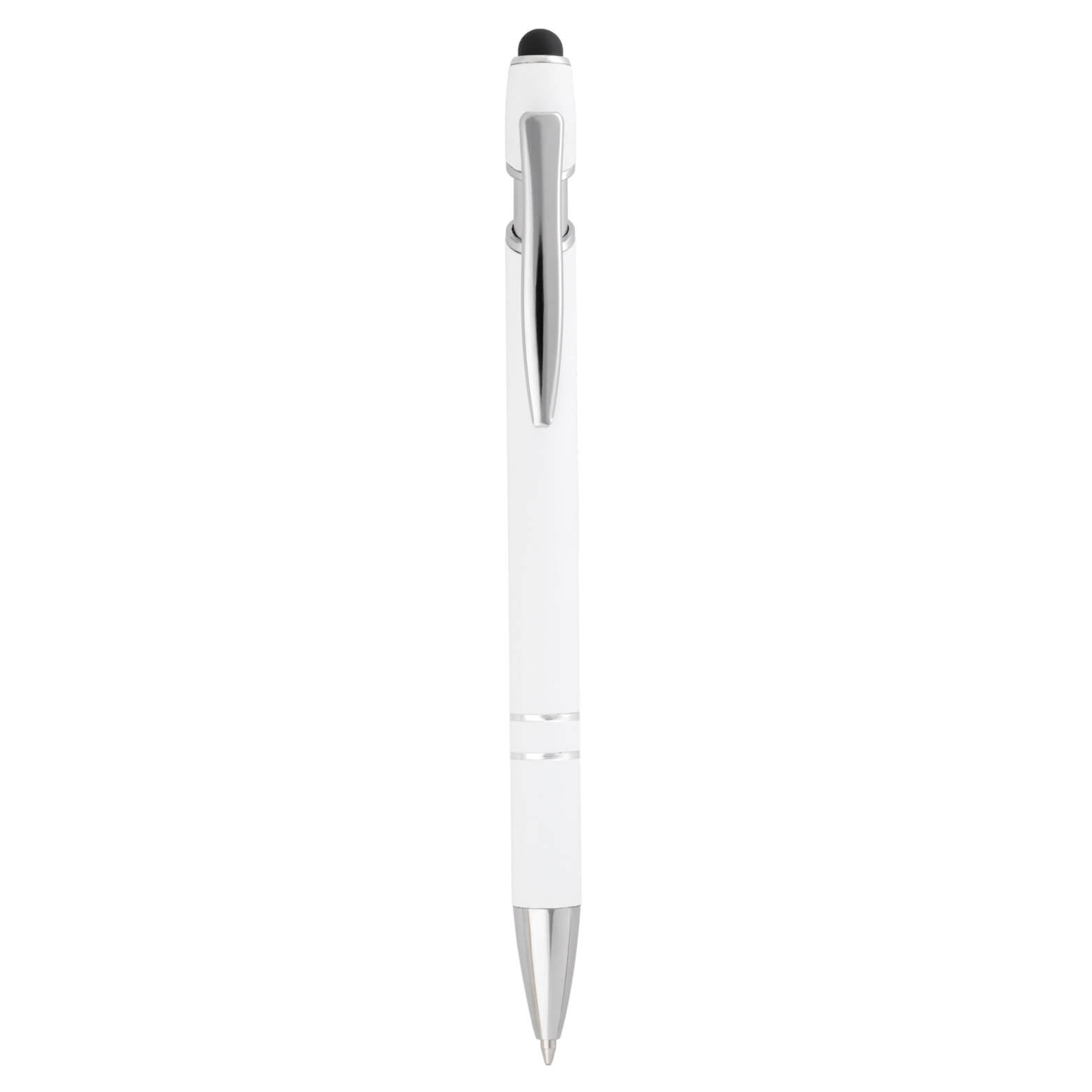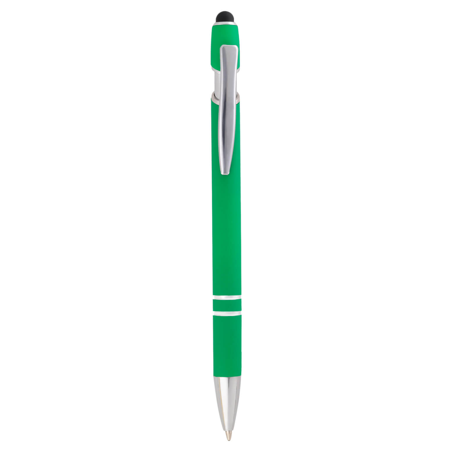 LAKEN Bolígrafo metálico con acabado rubber, goma touch screen, clip y mecanismo de click.