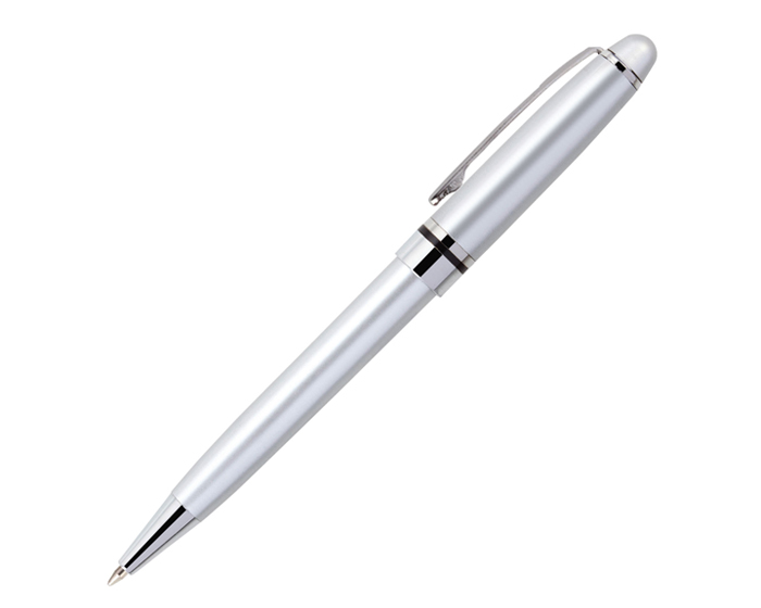 BULGARI - Bolígrafo plástico con acabado metalizado, anillo y punta metálica. Mecanismo retráctil.
