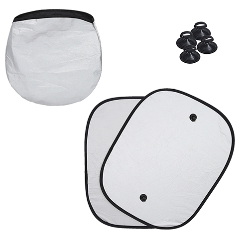 KRUT Juego de protectores solares para ventanas. Incluyen chupones, dos piezas y una funda para guardar. Diámetro con funda: 16 cm.