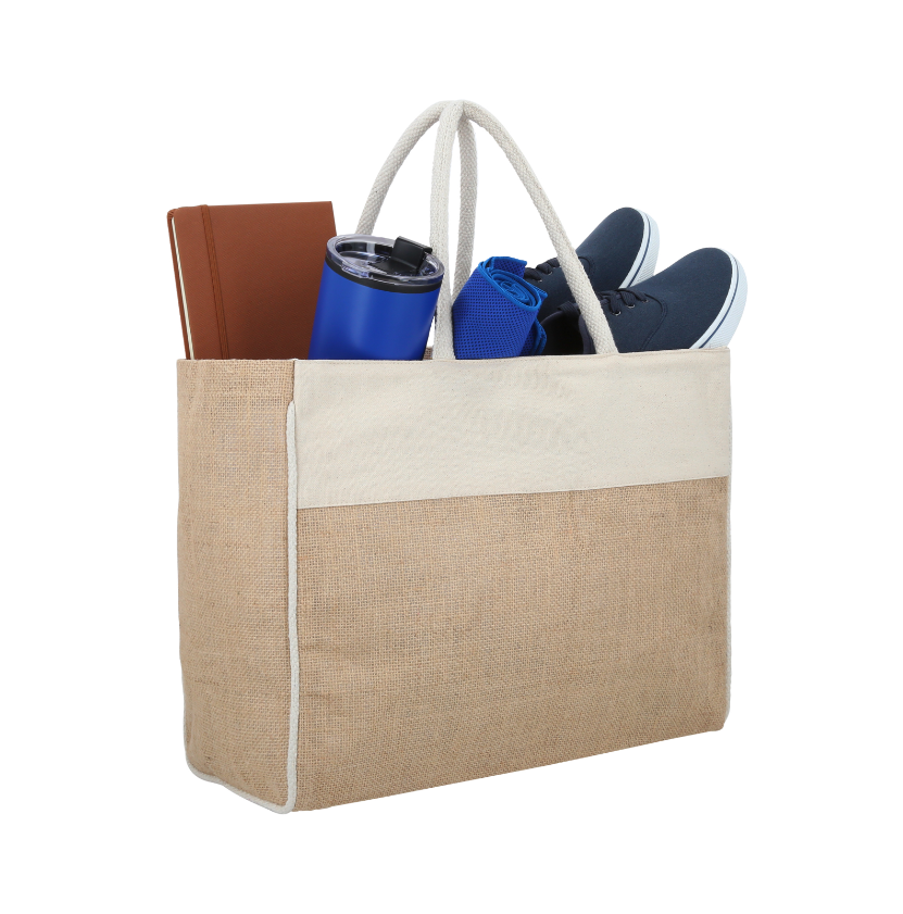 CUBA Bolsa de yute laminada con algodón, fuelle y asas.