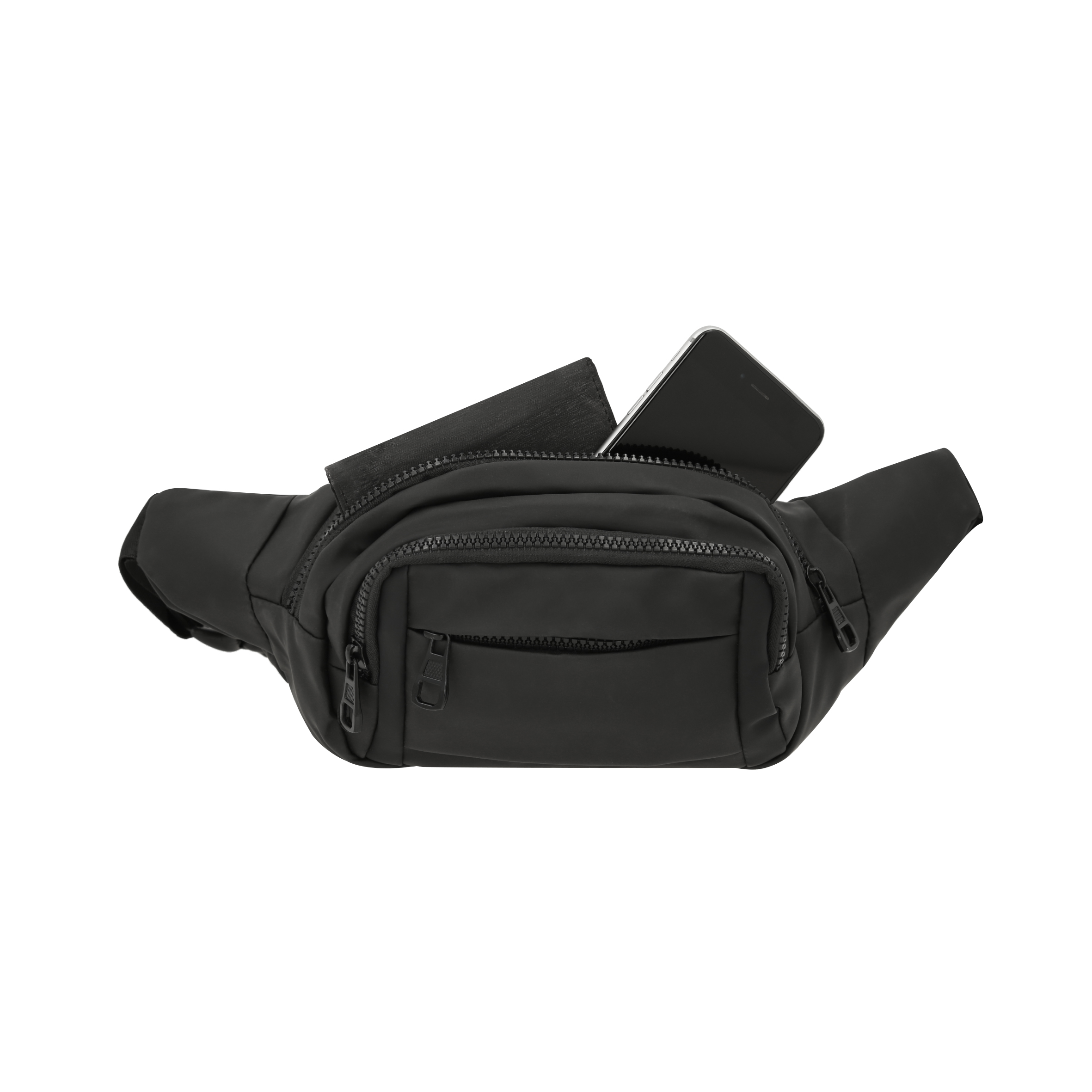 TOM Cangurera con 4 compartimentos, 3 en la parte frontal, 1 en la parte trasera, cinta ajustable a la cintura y broche de seguridad a presión.