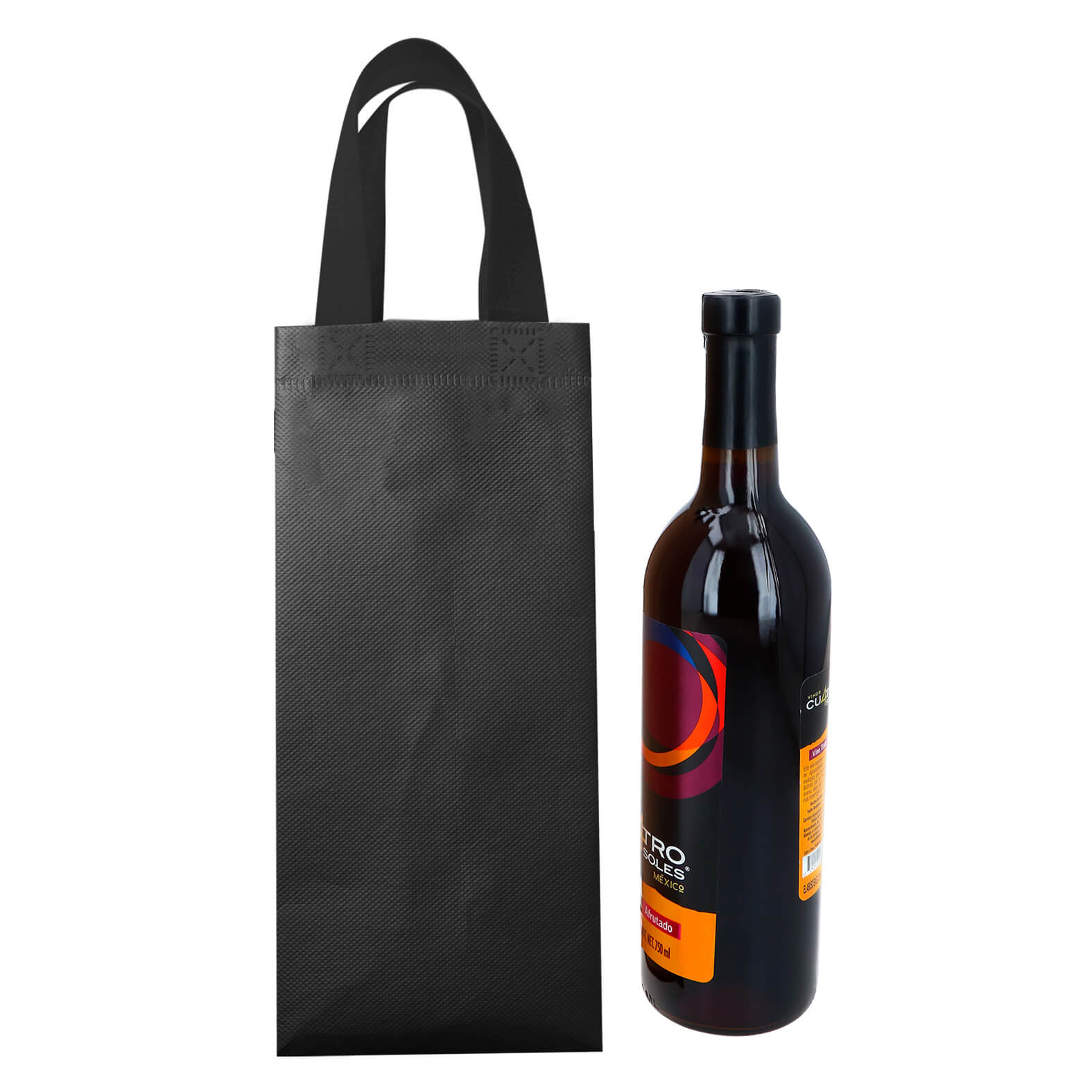 SYR Porta botella ecológica laminada con asas de non woven de 100 gr/m2, termoselladas.