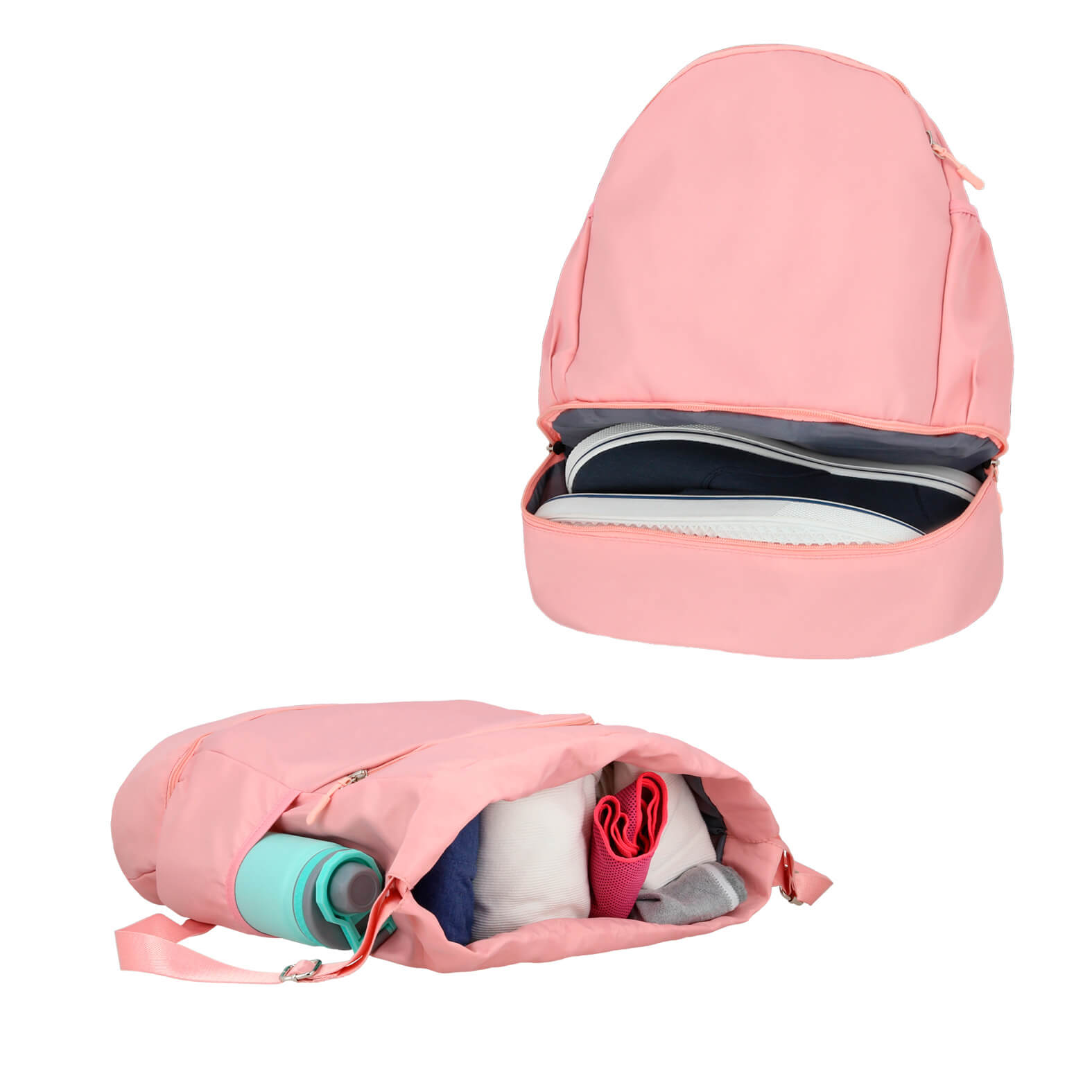 DEPO Morral de poliéster con 1 compartimento principal, 1 compartimento frontal, 1 compartimento trasero, bolsas laterales, zapatera y correas ajustables.