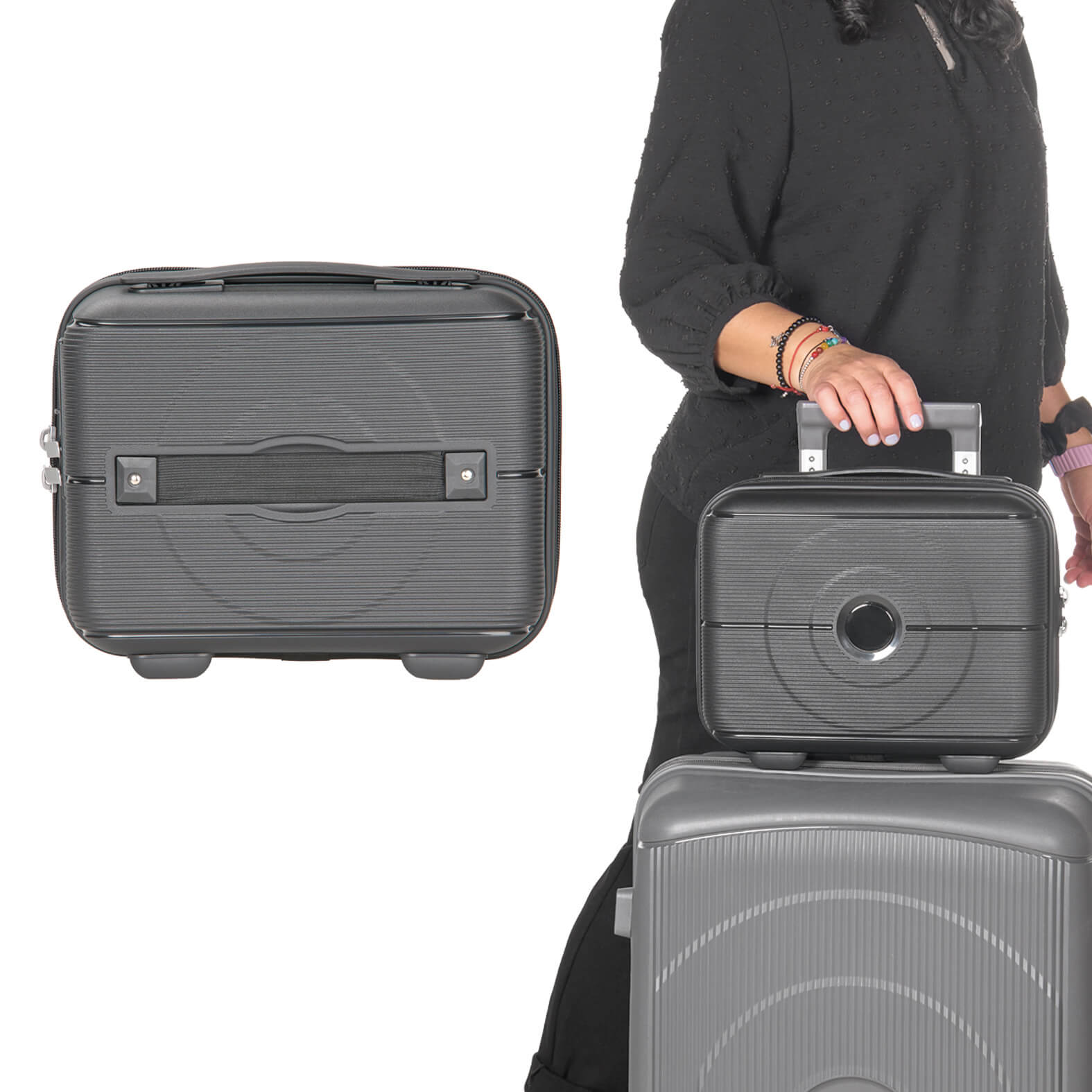TINY Maleta de viaje de plástico con compartimento principal con cierre, banda elástica, candado de seguridad, asa y banda carry-on.