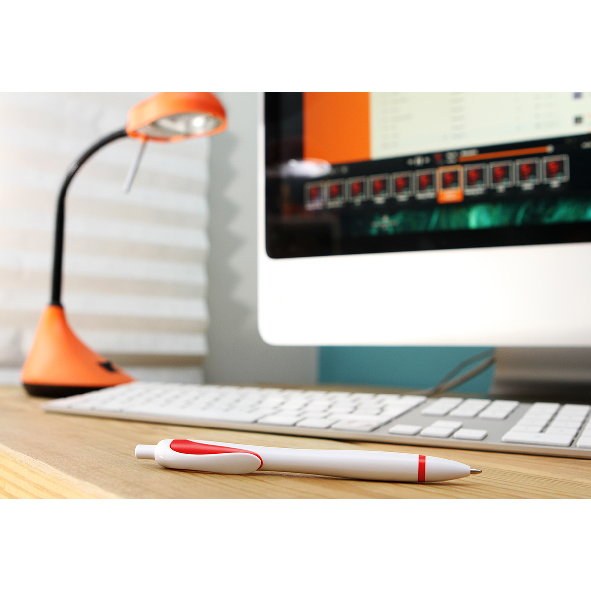 Bolígrafo de plástico Varzi. - Bolígrafo retráctil fabricado en plástico ABS. Su diseño ergonómico se complementa con detalles en colores vibrantes que añaden un toque de estilo. Tinta de escritura negra.