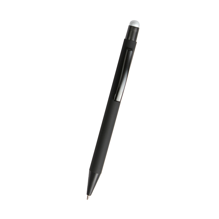 Bolígrafo en aluminio Bursa. - Bolígrafo retráctil fabricado en aluminio terminado Rubber (el grabado destapa en color del puntero touch) con puntero touch, tinta de escritura negra.