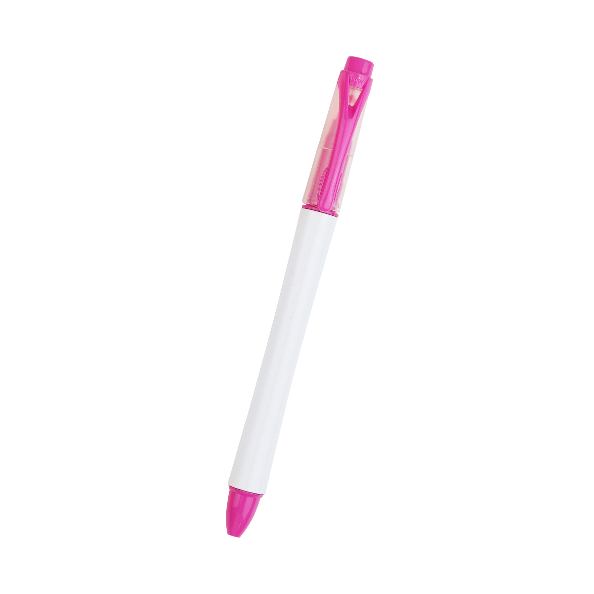 Bolígrafo Surabaya. - Bolígrafo 2 en 1 con marca textos; barril plástico color blanco, tapa en la parte superior translucida con detalles de color en clip y punta. Tinta de escritura negra.