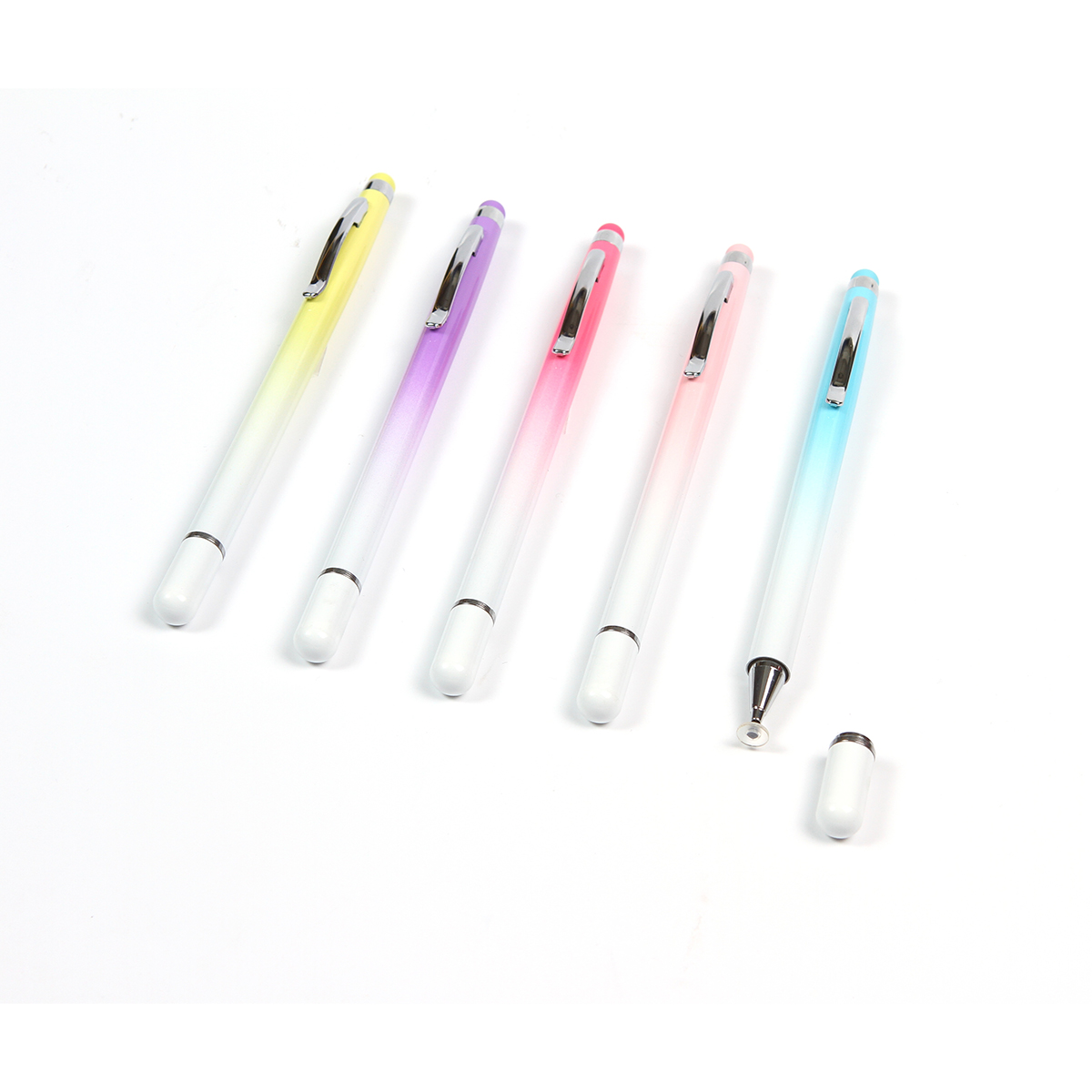 Lápiz Vay. - Lápiz tipo bolígrafo dos en uno, con  touch en la parte superior para pantallas de dispositivos electrónicos. Barril fabricado en aluminio con clip de metal. Incluye tapa magnética. Disponible en diferentes colores degradados.