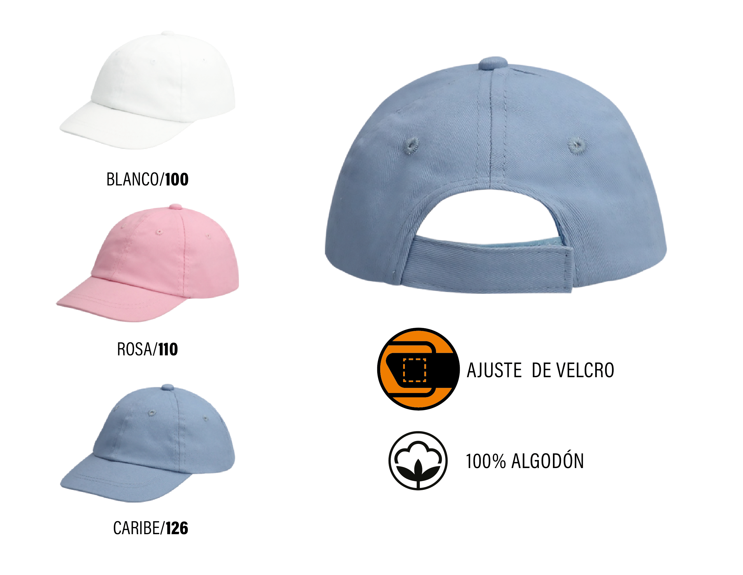 DKPS #010 GORRA BEBE BLANCO UN GABARDINA 100% ALG. AJUSTE VELCRO
