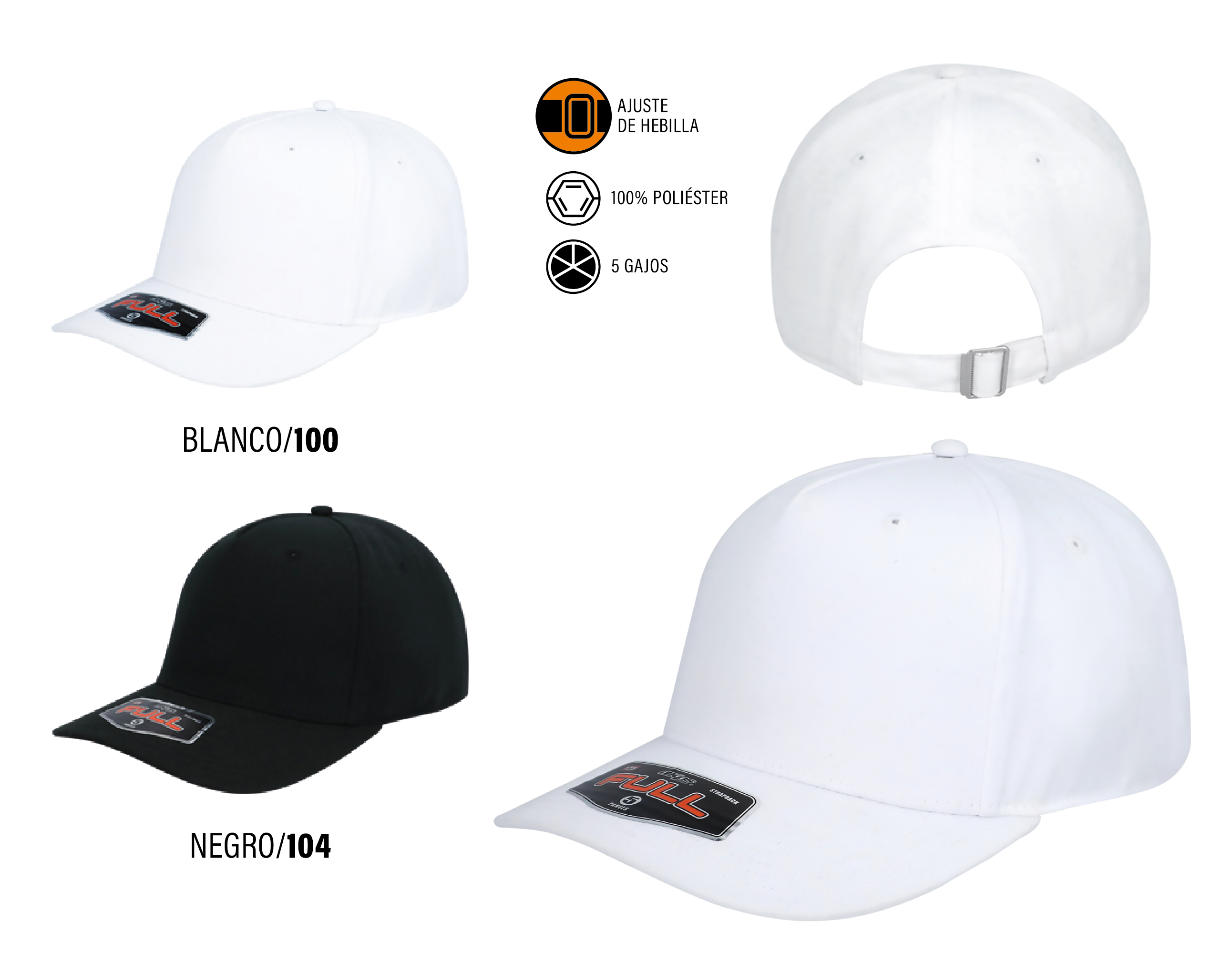 GORRA FULL 100% POLIESTER 5 GAJOS AJUSTE DE HEBILLA METALICA NEGRO