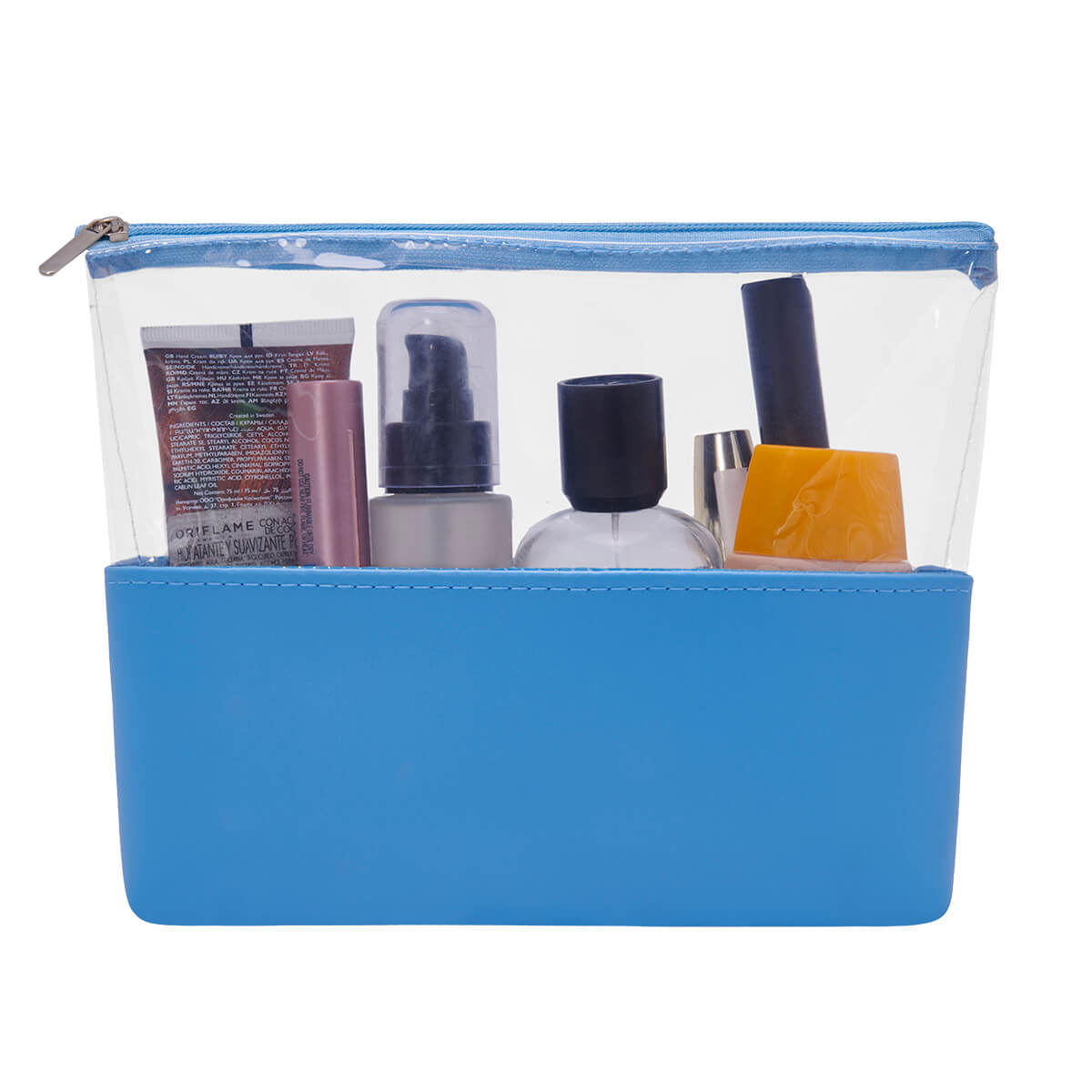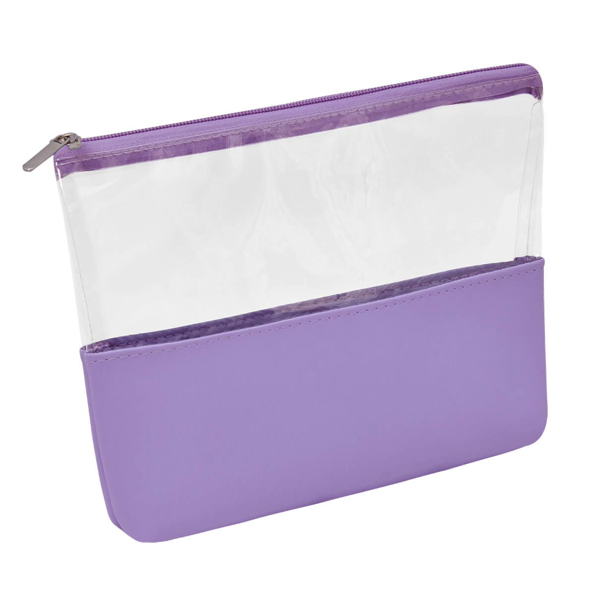 COSMETIQUERA ESMERALDA - Cosmetiquera con cierre. Diseño combinado de PVC transparente y curpiel de color en base.