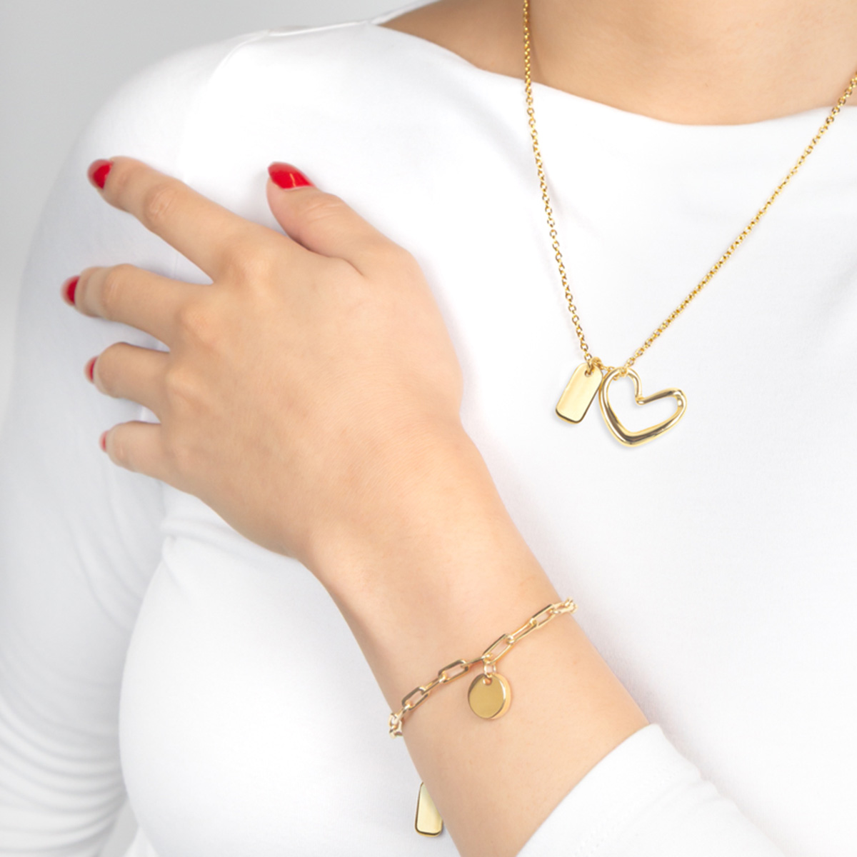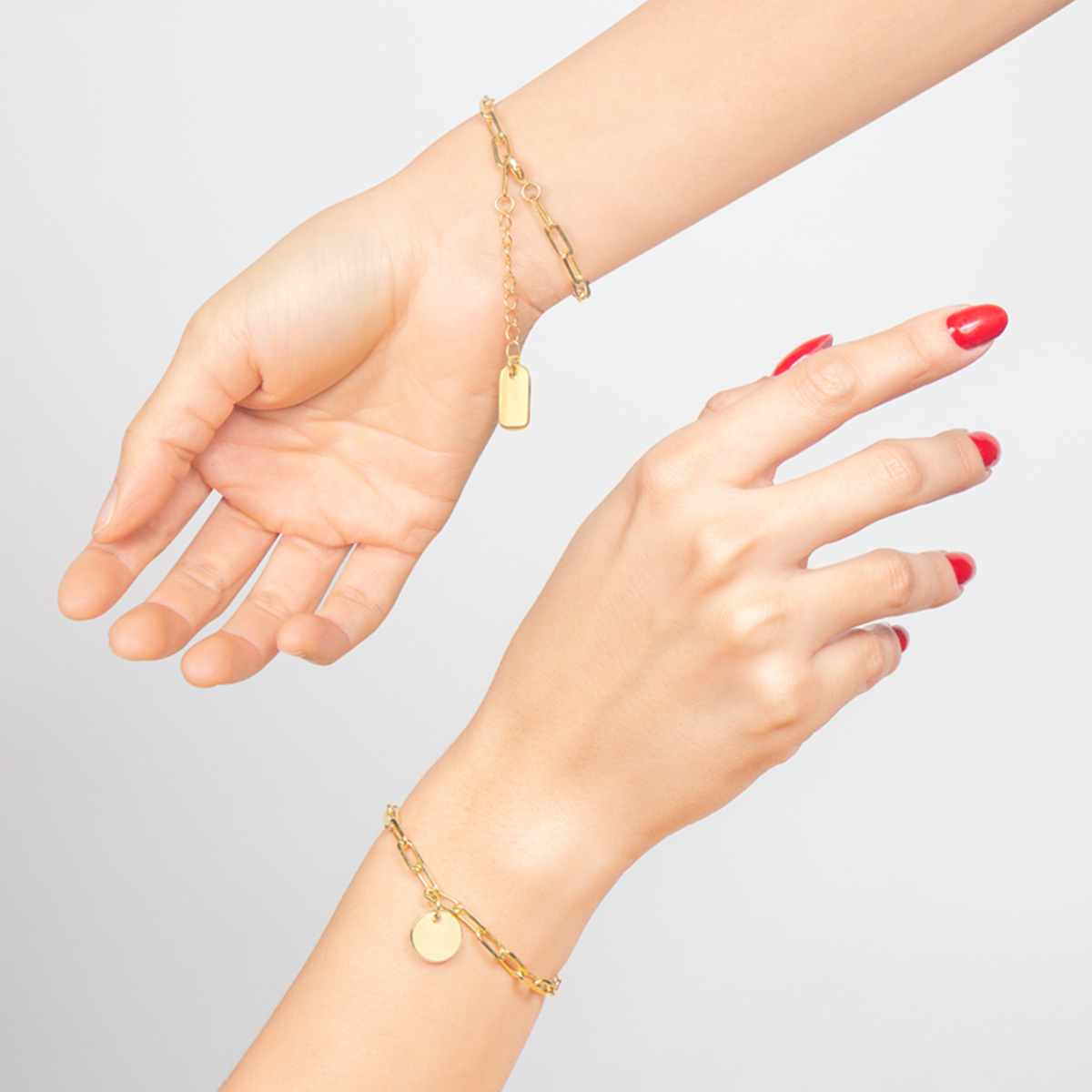 PULSERA ONA - Pulsera con dije circular. Placa para grabado. Cadena base de latón de 16?cm + extensión de 3?cm, ambos con chapa de oro de 1?g. Dijes y placa de marca fabricados en metal zamac, también con chapa de oro de 1?g. Instrucciones de cuidado: Limpiar con un paño seco. Evitar contacto con el agua o productos químicos. No dormir, ni bañarse con la pieza. Incluye caja individual.