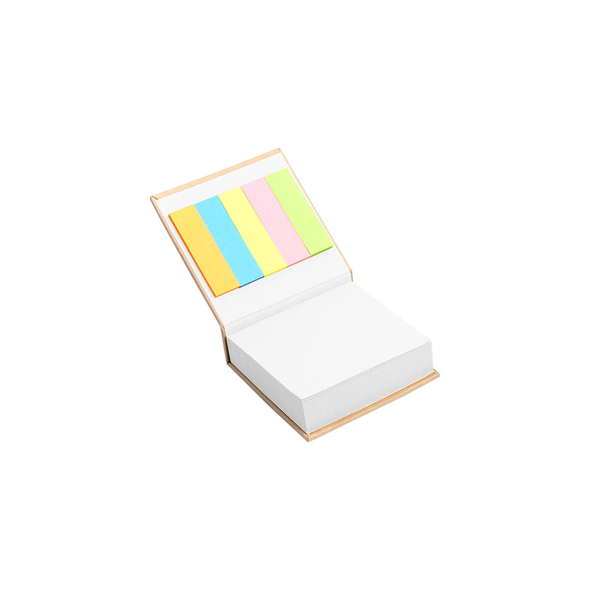 Libreta ecológica Hanoí. - Libreta ecológica de pasta rígida con notas de color blanco y banderitas de colores adhesivas. Es una opción ideal para aquellos que buscan una libreta funcional y ecológica.