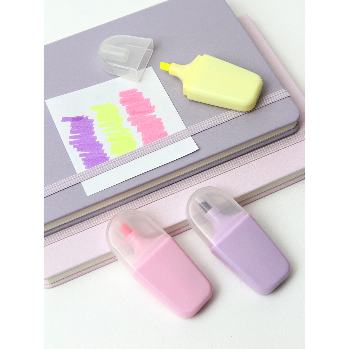 Marcador Arnaje. - Marcador de texto con cuerpo fabricado en plástico ABS y tapa de plástico de polipropileno, en colores rosa, amarillo, morado, verde, azul. Te brinda opciones versátiles para resaltar y organizar la información, además su tamaño te permite llevarlo contigo sin ocupar mucho espacio.