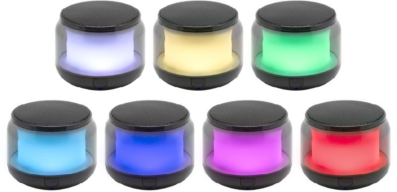 BOCINA BLUETOOTH "JELLY" ABS transparente con cubierta de malla metálica por donde se emite el sonido. Botones en color negro. Led que cambia entre 7 colores y 8 modos de luz para elegir. Potencia 3W. Versión Bluetooth: 5.0. capacidad de la batería: 500 mAh. Cable de carga y conexión USB-C en color negro. Presentación en caja de regalo.