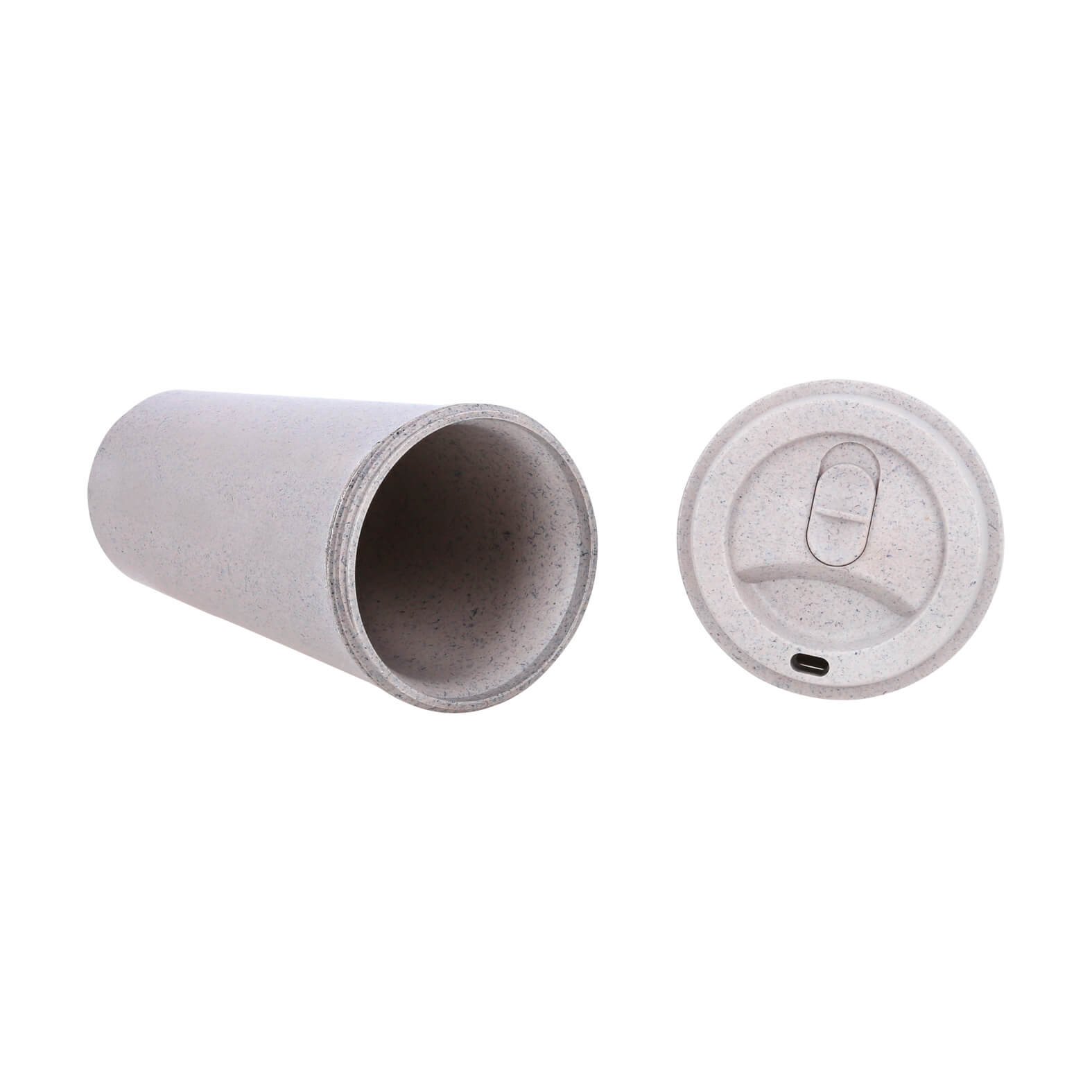 ECO STELLA Termo de RPET con doble pared y tapa hecha a base de coco enroscable con seguro deslizable.