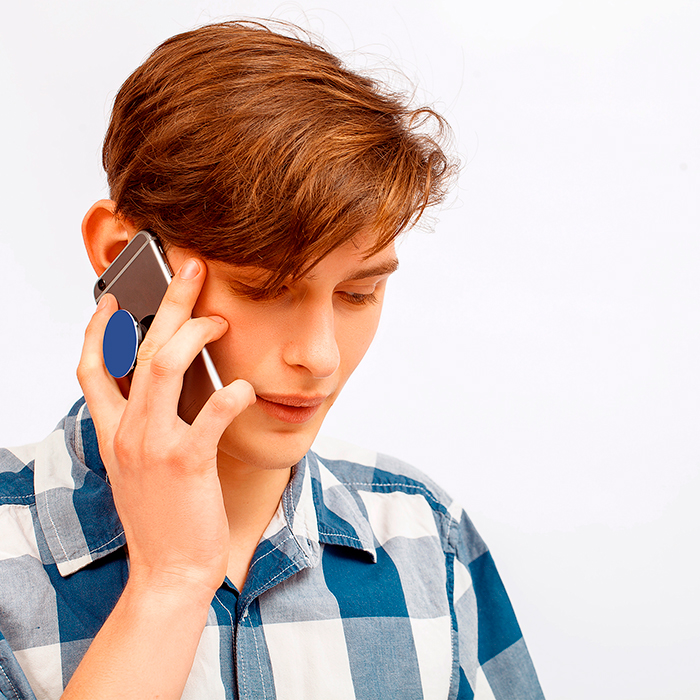 Soporte para smartphone - Soporte circular de aluminio para smartphone, con adhesivo 3M que funciona también como agarradera de mano.