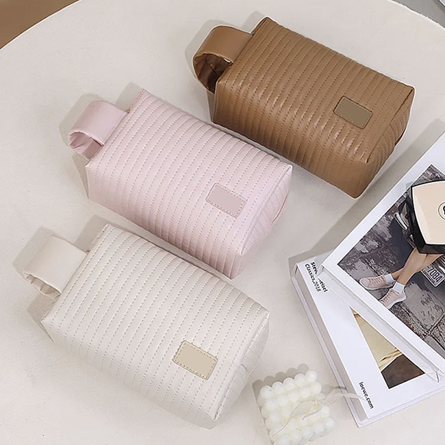 Cosmetiquera Cumbal Cosmetiquera Cumbal Cierre en zipper con correa en lomo para sujetar. Etiqueta al frente para personalizar. Colores: Beige, Café, Celeste, Rosa y Verde