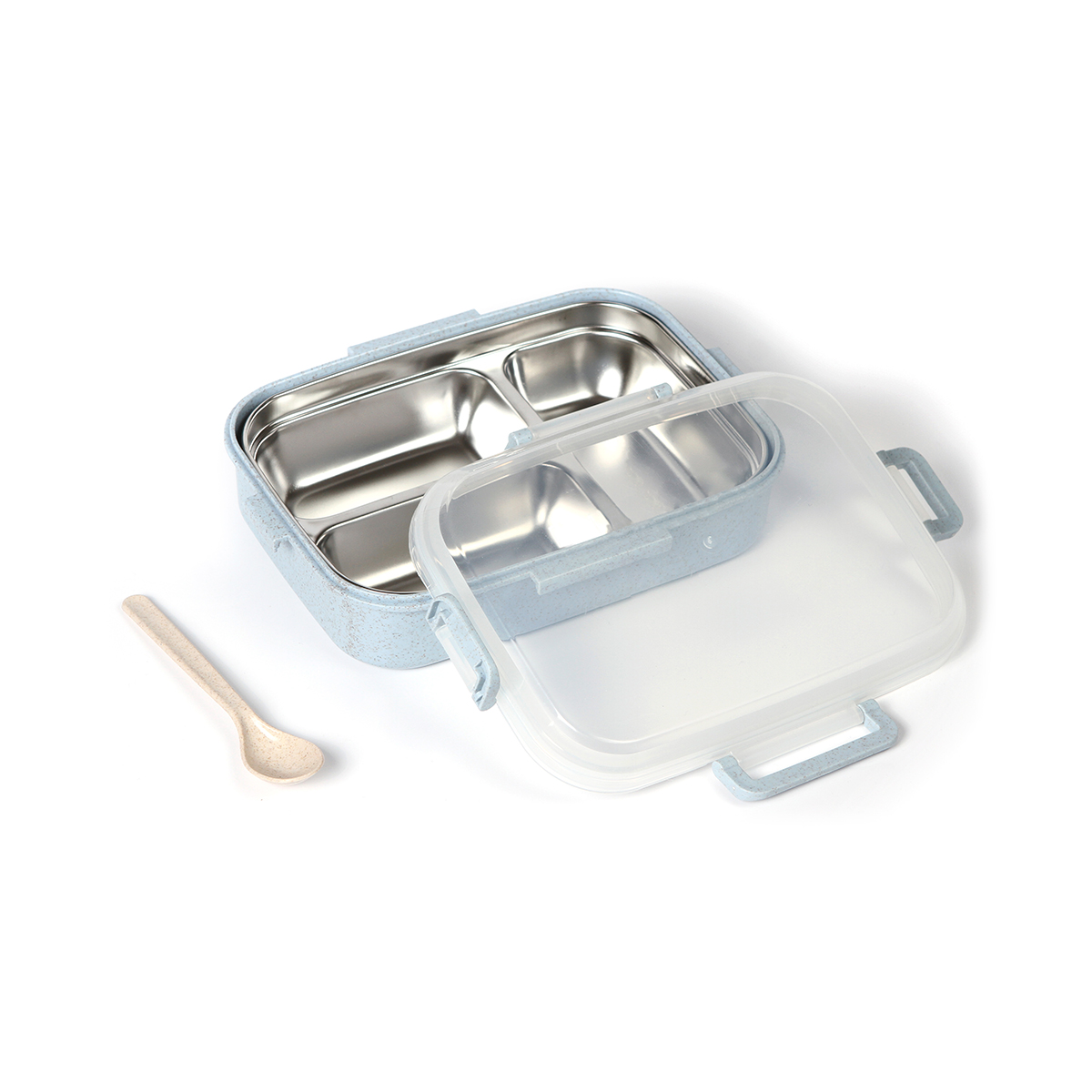Contenedor Perak. - Contenedor de alimentos fabricado en fibra de trigo y PP, con charola de acero inoxidable y cuchara fabricada en fibra de trigo y PP, no usar en microondas. Capacidad 1000 ml.