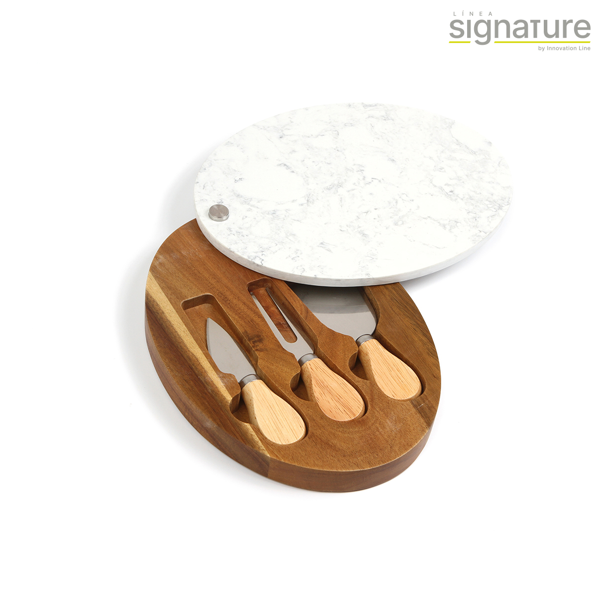 Set Sovareto. - Set de quesos fabricado en mármol y madera de bambú. Incluye 3...