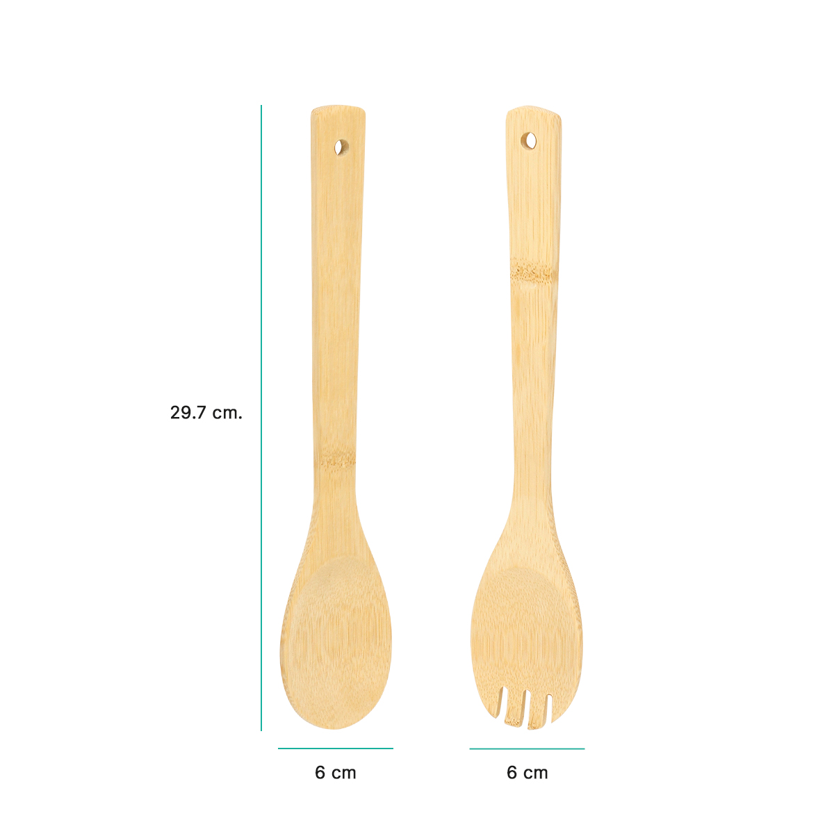 Set Holbak. - Set de cubiertos para ensalada fabricado en madera de bambú barnizada. Incluye cuchara y tenedor, con perforación para colgar. Cuenta con estuche con correa ajustable para cerrar.