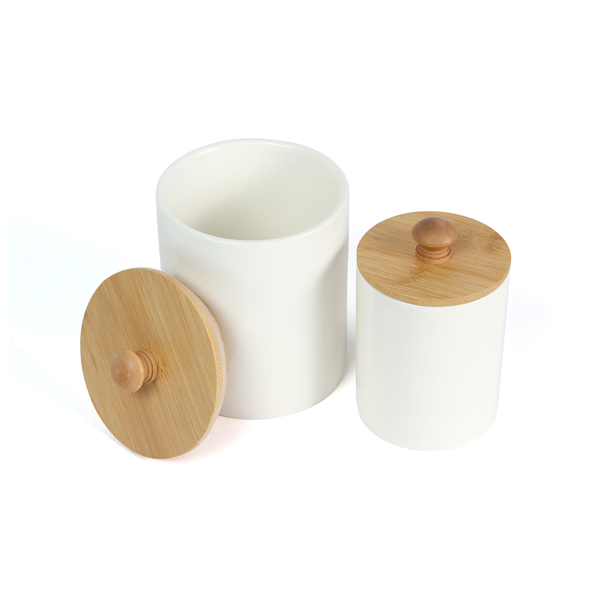 Set de contenedores Brou. - Set de contenedores fabricados en cerámica con tapa de bambú con acabado en laca para una mayor resistencia y duración. Es ideal para guardar diferentes artículos y para dar un toque de elegancia a los espacios del hogar, desde la cocina hasta el dormitorio. Capacidad de 750 ml. Y 330 ml.
