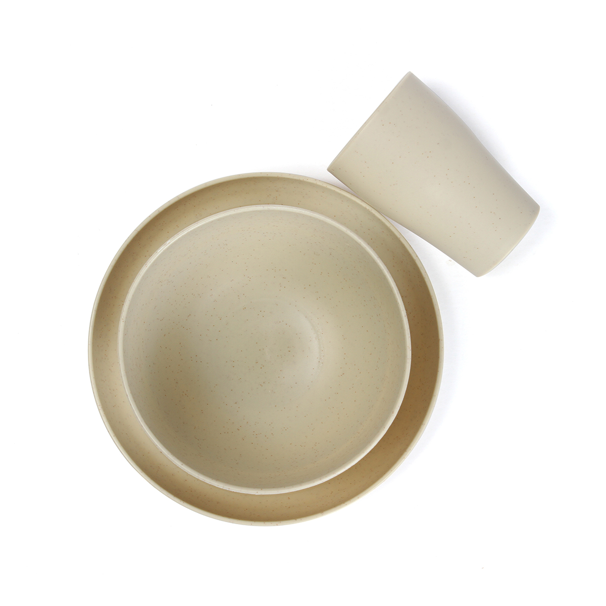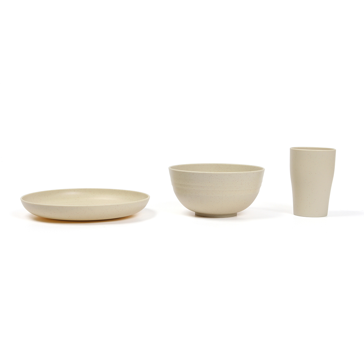 Set Reay. - Set de 12 piezas de vajilla elegante, ecológico y funcional. Este set incluye 4 platos, 4 bowls y 4 vasos fabricados con una mezcla sostenible de paja de trigo y polipropileno. Ligero, reutilizable, libre de BPA. Perfecto para el uso diario con un diseño minimalista en tono beige natural.