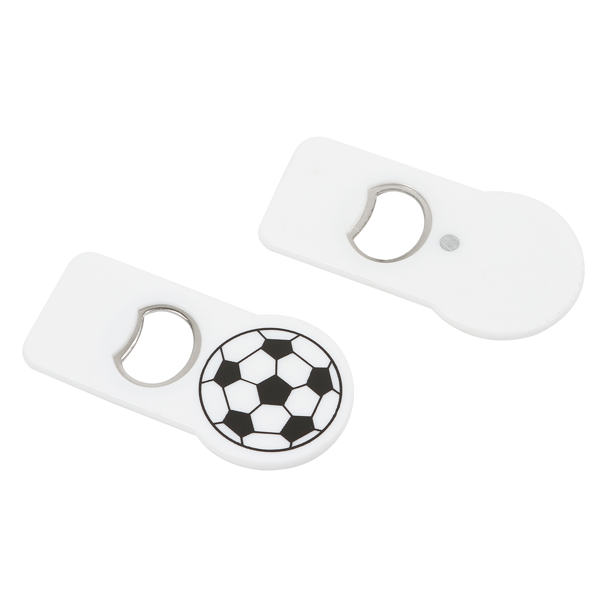 Destapador Fresgoe. - ¡Abre tus bebidas con estilo y pasión por el fútbol! Este destapador con diseño futbolero es el accesorio perfecto para cualquier aficionado. Fabricado en acero inoxidable y plástico HIPS (poliestireno de alto impacto) caracterizado por su alta resistencia, ofrece durabilidad y un agarre cómodo. Incorpora un imán en la parte trasera, lo que te permite colocarlo fácilmente en superficies metálicas como el refrigerador, ¡para tenerlo siempre a la mano! Ideal para reuniones, parrilladas, partidos o simplemente para disfrutar una bebida bien fría. Perfecto como regalo o accesorio para eventos deportivos
